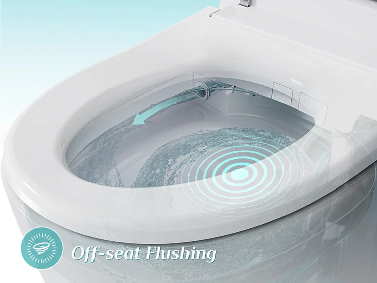 Leave the seat, and the toilet flushes automatically, keeping the bowl spotless with every use. For added convenience, flush options include a knob, foot-kick button, or remote control, offering a touch-free and hygienic solution to fit your needs.